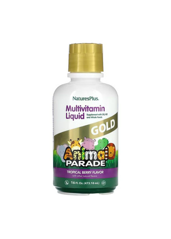 Natures Plus Animal Parade – лучшие редкие витамины для детей в мире, которые обеспечивают поддержку костей, пищеварения, иммунитета и уровня энергии. Правильное питание не является приоритетом для детей – они слишком заняты, будучи детьми! Но родители заботятся и знают о важности витаминов и минералов. NaturesPlus создал веселый, вкусный, но уникально питательный редкий корм Animal Parade GOLD Multi Liquid! Содержит более 20 цельных продуктов, таких как брокколи и шпинат, все важные витамины, ключевые минералы, незаменимые жирные кислоты и многое другое. Размер одной порции -1 столовая ложка (15 мл): Калории - 20 Всего углеводов - 5 г Всего сахара - 3 г Содержит 3 г добавленного сахара 12 % Витамин A (в виде пальмитата, бета-каротина) - 1500 мкг RAE (500%*) Витамин D (в виде холекальциферола [D3]) - 10 мкг (67 %*) Витамин E (в виде d-альфа токоферилацетата) - 20 мг (333%*) Тиамин (витамин B1) (в виде гидрохлорида тиамина) - 1,4 мг (280%*) Рибофлавин (витамин B2) - 1,7 мг (340%*) Ниацин (в виде никотинамида) - 20 мг (333%*) Витамин B6 (в виде гидрохлорида пиридоксина) - 2 мг (400 % *) Фолат (в виде L-5-метилтетрагидрофолата кальция) - 17 мкг DFE (10 мкг L-метилфолата) (11%*) Витамин B12 (в виде метилкобаламина) - 6 мкг (667%*) Биотин - 50 мкг (625%*) Кальций (в виде карбоната, цитрата) - 20 мг (3%*) Железо (в виде глюконата) - 2,5 мг (36%*) Йод (в виде йодида калия) - 100 мкг (111%*) Магний (в виде оксида, цитрата) - 10 мг (13%*) Цинк (в виде глюконата) - 3 мг (100%*) Марганец (в виде глюконата) - 0,05 мг (4%*) Инозитол - 10 мкг ** Процент от суточной нормы при употреблении 1000 калорий в день. Другие ингредиенты: Вода, фруктоза, растительный глицерин, натуральный краситель (анато, свекольный сок, фиолетовая морковь), лимонная кислота, натуральные ароматизаторы, яблочная кислота, ксантановая камедь, аскорбиновая кислота, бензоат натрия (для сохранения свежести), сорбат калия подсолнечного масла, лимонные биофлавоноиды, плоды шиповника (Rosa canina), рисовая шелуха, брокколи, шпинат, плоды манго, морковь, Вест-индийская вишня (Malpighia glabra), плоды папаи, яблочный пек. Не содержит синтетических красителей, молока, яйца, рыбы, моллюски и ракообразные, древесные орехи, арахис, пшеницы, сои и кунжута. Рекомендации по применению: Перед использованием хорошо взболтайте. В качестве диетической добавки для детей принимать одну столовую ложку или 1/2 капсулы (около 15 мл) один раз в день. Добавка Source of Life Animal Parade в жидкой форме прекрасно смакует и сама по себе, и в сочетании с любимым напитком – питательное лакомство, которого ваши дети будут ждать каждый день. После открытия упаковки продукт следует хранить в холодильнике. Предупреждение: Случайная передозировка продуктов, содержащих железо, – основная причина смертельных отравлений среди детей до 6 лет. Хранить продукт в недоступном для детей месте. В случае случайной передозировки немедленно обратитесь к врачу или токсикологическому центру. Держать упаковку плотно закрытой.