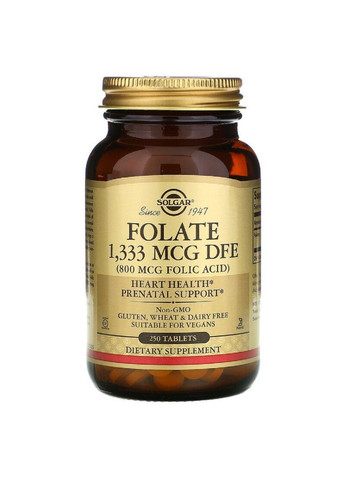 Фолат, Solgar, 800 мкг, 100 таблеток Описание Фолат - планирование беременности с Солгар Компания основана в 1947 году (800 мкг метафолина) Без ГМО Без глютена, пшеницы и молочных продуктов Подходит для веганов Сертификат Certified Gluten Free добавку Солгар фолат 800 купить рекомендуется беременным и планирующим зачатие, а также для профилактики болезней сердца, нервной системы, анемии. В отличие от аналогов фолат не требует превращения в активную форму. По своей сути, фолат – быстрый витамин. Попадая в организм, соллат фолат сразу включается в биохимические процессы. Следовательно, фолат купить целесообразно, если организм не может перевести фолаты в активную форму. Как понять, что нужно соллат фолат купить? Дефицит фолиевой кислоты может развиться на фоне плохого питания, беременности, некоторых желудочно-кишечных проблем, заболеваний печени, злоупотребления алкоголем, после диализа почек. При наличии состояний из списка необходимо немедленно купить фолат 800 мг. Обязательно приобрести фолат следует, если врач диагностировал опасность развития анемии. Для каких целей целесообразно купить Солгар фолат? Активный фолат витамин поддерживает: здоровье сердца; · стабильность работы нервной системы; · правильность формулы крови; · формирование спинного мозга ребенка, поэтому важно принимать фолат при беременности. Для того чтобы организм мог усвоить фолиевую кислоту, она должна быть превращена в активную форму с помощью ряда биохимических процессов. Meтафолин (Л-метилфолат) не требует превращения, поскольку он биоидентичен биоактивной форме. Другими словами, он полностью готов к усвоению организмом. Это может быть полезно для людей, организм которых испытывает затруднения при превращении фолиевой кислоты в ее активную форму. Активный фолат в составе этого способствует здоровью сердца. Он также поддерживает здоровье нервной системы и образование здоровых эритроцитов. Рекомендации по применению В качестве пищевой добавки для взрослых принимать по одной (1) таблетке в день, желательно во время еды или в соответствии с рекомендациями врача. Ингредиенты Манитол, микрокристаллическая целлюлоза, растительная стеариновая кислота, растительная целлюлоза, диоксид кремния, растительный стеарат магния. Не содержит глютена, пшеницы, молочных продуктов, сои, дрожжей, сахара, натрия, искусственных ароматизаторов, консервантов и красителей. Предупреждение Перед применением добавок во время беременности, кормления грудью, приема какого-либо лекарства или при наличии каких-либо заболеваний следует проконсультироваться с врачом. При возникновении каких-либо нежелательных реакций следует прекратить прием и обратиться к врачу. Хранить в месте, недоступном для детей. Хранить при комнатной температуре. Не использовать, если внешняя защитная пленка отсутствует или повреждена. Пищевая ценность Размер порции: 1 таблетка Количество в 1 порции % от суточной нормы Фолат (800 мкг Л-метилфолата) (в виде Л-метилфолата, метафолина) 1333 мкг фолиевого эквивалента 333% Содержит незначительное количество сахарного спирта Отказ от ответственности своевременно предоставляет новые фото, обновление данных может происходить с задержкой. Наш интернет-магазин делает все возможное, чтобы изображения и информация о продукции были предоставлены своевременно и корректно. Даже е
