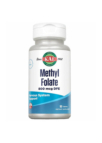 KAL Methyl Folate 800mcg – 90 tabs – Поддерживает здоровье нервной системы и нормальный обмен фолиевой кислоты в организме. Способствует правильному синтезу ДНК и поддержанию клеточного роста. Поддерживает здоровье сердечно-сосудистой системы, помогая регулировать уровень гомоцистеина. Обеспечивает поддержание когнитивных функций и психоэмоционального состояния.