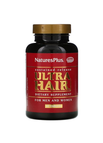 Витамины для волос для женщин, Women’s Ultra Hair Plus, Nature's Plus - питательный комплекс, содержащий важные ингредиенты, способствуют стимулированию, уплотнению и увеличению роста волос, укреплению здоровья волос, и которые способны придать им объем, блеск, мягкость и шелковитость Размер порции: 2 таблетки Количество порций: 30 Количество на порцию % от суточной потребности* Витамин А (бета-каротин) 3000 мкг (10000 МЕ) 333% Витамин C (аскорбиновая кислота) 500 мг 556% Тиамин (витамин В1) (тиамин HCI) 30 мг 2500% Рибофлавин (витамин В2) 100 мг 7692% Ниацин (ниацинамид) 30 мг 188% Витамин B6 (пиридоксин гидрохлорид) 10 мг 588% Фолат (кальций-L-5-метилтетрагидрофолат) 667 мкг (400 мкг L-метилфолат) 167% Биотин 2000 мкг 6667% Пантотеновая кислота (пантотенат кальция) 50 мг 1000% Холин (битартрат) 50 мг 18% Цинк (хелат аминокислоты) 5 мг 45% МСМ (метилсульфонилметан) 200 мг † Инозитол 200 мг † LignaCare Стандартизированные экстракты льна SDG (секоизоларицирезинол дигликозид) 26% (26 мг) 100 мг † Гинкго билоба лист (стандартизованный 24% (24 мг) гинкго флавонгликозидов, 6% (6 мг) терпеновых лактонов) 100 мг † ПАБК (парааминобензойная кислота) 100 мг † L-цистеин (аминокислота в свободной форме) 100 мг † Куркума (корневище Curcuma longa) (стандартизована до 95% [95 мг] куркумина) 100 мг † Сульфат глюкозамина (аминомоносахарид) (из бычьего хряща и / или панциря ракообразных) 50 мг † Со пальметто (Serenoa repens) ягод (стандартизированные 45% (11,25 мг) свободных жирных кислот) 25 мг † * Процент от суточной потребности основан на диете в 2000 калорий. † Суточная потребность не определена.