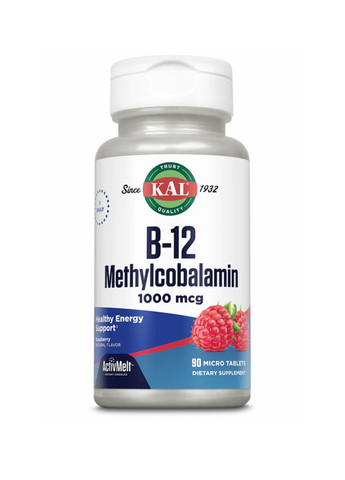 Доверяйте качеству с 1932 года 1 Ежедневно Поддержка здоровой энергии Натуральный вкус Веганский Без сахара Пищевая добавка Обсуждение: Метилкобаламин, также известный как коэнзим B-12, является метаболически активной формой витамина B-12 в организме. Пастилки KAL® Methylcobalamin предназначены для оптимального усвоения и эффективности в организме. Витамин B-12 обеспечивает питательную поддержку для нормального здорового синтеза эритроцитов, нервной функции и уровня гомоцистеина. Рекомендации по применению Растворяйте 1 микропастилу во рту или под языком каждый день. Оставьте микрорассос во рту до полного растворения, чтобы максимизировать всасывание. Используйте только по назначению. Другие ингредиенты Ксилит, сорбит, целлюлоза, натуральный смешанный ягодный ароматизатор с другими натуральными ароматизаторами, магния стеарат, стеариновая кислота, лимонная кислота, диоксид кремния и стевия (экстракт листьев).