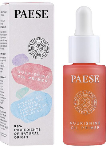 Масло питательное для макияжа от бренда Paese идеально подготовит ваше лицо для стойкого мейкапа. Она бережно очищает кожу от себума и ороговевших клеток, без раздражений и ощущения стянутости. Благодаря комплексу питательных органических масел средство смягчает кожу, разглаживает микрорельеф и питает витаминами. Извлеките максимум пользы для своего лица из одного флакона. Особенности Paese Minerals Hydrating Oil Primer: - масло жожоба стимулирует выработку эластина и коллагена, обеспечивающих упругость кожи; - масло канолы питает лицо витаминами А, Е, обладает антиоксидантными свойствами; - масло авокадо оказывает антибактериальное действие и ускоряет заживление ран; - морковь; преждевременному старению; - льняное масло укрепляет микробиом кожи; - масло из виноградных косточек - это природный антиоксидант для борьбы со свободными радикалами; - масло из малиновых косточек стимулирует синтез липидов для укрепления природного защитного барьера;