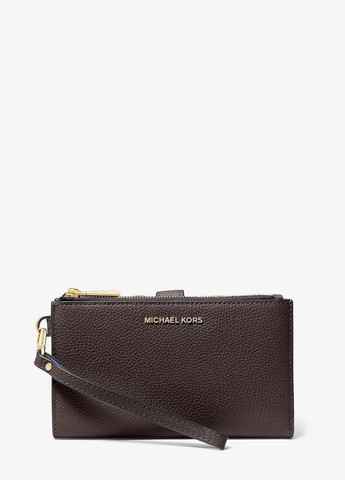 Кожаный кошелек Michael Kors с логотипом. Этот элегантный кошелек, выполненный из дорогой шагреневой кожи, придает ему неподвластный времени статус. Он имеет два отделения на молнии и центр с карманами для всего самого необходимого: от кредитных карт до смартфона. Отделение для смартфона застегивается на кнопку. Кошелек имеет также внутри 3 отделения для купюр, 7 отделений для кредитных карт и одно большое отделение сбоку. Застегивается на кнопку. Ремешок на запястье повышает его универсальность, поэтому его можно носить отдельно или в сумке. Логотип бренда спереди. Отличное качество. Упакован в фирменную подарочную коробку для идеального подарка себе или близким. Размер: 18,5*11*2,5 см.
