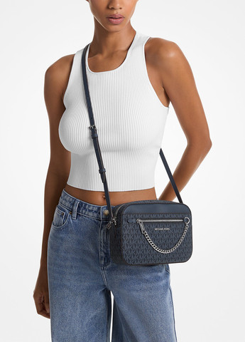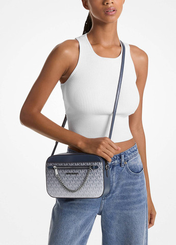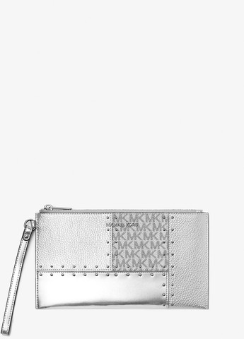 Кошелёк Michael Kors Этот вместительный двухскладной кошелёк от Michael Kors — идеальное сочетание стиля и функциональности. Выполненный из качественного материала, верх покрыт денимом. Кошелек украшают разнообразные нашивки и металлический логотип бренда. Кошелёк оснащён двумя отделениями на молнии и центральной частью, застёгивающейся на кнопку, где предусмотрено семь слотов для карт, три отделения для купюр и удобный карман на кнопке, в который легко помещается смартфон. Съёмный ремешок на запястье делает кошелёк универсальным: его можно носить как самостоятельный аксессуар или положить в сумку. Данный кошелек станет практичным и стильным аксессуаром на каждый день. Отличное качество. Размер: 18,5*11*2,5 см.