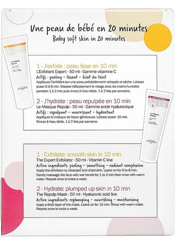 Описание Набор "Мгновенный эффект наполнения и сияние с гиалуроновой кислотой и витамином С" Состав набора: Маска-скраб для лица - Novexpert Vitamin C Expert Exfoliator, 50 мл + Маска для лица с гиалуроновой кислотой Novexpert Hyaluronic Acid комплексный набор по уходу за кожей, дающий вашему лицу эффект наполнения и сияния. Главными компонентами продуктов такого комплекта являются гиалуроновая кислота и витамин C, которые работают синергично, чтобы обеспечить интенсивное увлажнение и обновление кожного покрова. Эти составляющие способствуют освещению пигментации и стимулируют выработку собственного коллагена, придавая вашему лицу сияющий и молодой вид. Набор содержит также другие полезные вещества, такие как антиоксиданты и успокаивающие компоненты, которые уменьшают воспаление и повышают защиту кожи. Маска-скраб для лица - Novexpert Vitamin C The Expert Exfoliator: - отшелушивает ороговевший слой и питает клетки кожи витаминами; - содержит глюконолактон и экстракт папаи; - успокаивает кожу, благодаря пудре из абрикосовых косточек и бамбуковому углю; Novaxyline. Маска для лица с гиалуроновой кислотой — Novexpert Hyaluronic Acid The Repulp Mask: - рекомендована для сухой и нормальной кожи; - обладает интенсивным питательным и восстановительным эффектом; - подходит для использования в условиях агрессивного внешнего воздействия; парабенов, минеральных масел. Нанести на все лицо, избегая зоны вокруг глаз и губ, оставить как маску на 3-8 минут (в зависимости от потребностей кожи), затем смочить и сделать легкий массаж 1-2 минуты, смыть теплой водой. Применять можно несколько раз в неделю (при необходимости). Всегда производите тестовое нанесение средства, прежде чем начинать использовать его. Маска для лица с гиалуроновой кислотой – Novexpert Hyaluronic Acid The Repulp Mask наносите на все лицо на 10-15 минут, затем удалите остатки маски салфеткой или смойте теплой водой. Использовать по мере необходимости. Состав Novexpert Vitamin C The Expert Exfoliator Aq/?Water, Butyrospermum Parkii (Shea) Butter, Butylene Glycol, Tridecyl Stearate, Isodecyl Salicilate, PEG-30 Dipolyhydroxystearate, Tridecyl Trimellitate, Persea Gratissima Stearate, Propylene Glycol, Dipentaerythrityl Hexacaprylate /? Butylparaben, Ethylparaben, Propylparaben, Helianthus Annuus (Sunflower) Seed Oil, CI 75130/? Glycol, C10-18 Triglycerides, Glycerin, Butyrospermum Parkii (Shea) Butter, Garcinia Indica Seed Butter, Candelilla/Jojoba/Rice Bran Polyglyceryl-3 Esters, Glyceryl Stearate, Caprylic/Capric Triglyceride, Parfum (Fra Hydroxysrearic/Linolenic/Oleic Polyglycerides, Trehalose, Cetearyl Alcohol, Sodium Stearoyl Lactylate, Microcrystaline Celulose, Glyceryl Caprylate, Aloe Barbadensis Leaf Juice, Tocopherol, Bisabolol, Galactaric Xid, Laminar BiosaccharideGum-2, Celulosa Gum, Sodium Hyaluronate, Sclerotium Gum, Xanthan Gum, Phytic Acid, Commiphora Mukul Resin Extract, Oenothera Biennis (Evening Primrose) Seed Extract, Brassica Oleracea Италика (Broccoli) Extract, Extract, Silybum Marianum Extract, Rosmarinus Officinalis (Rosemary) Leaf Extract.