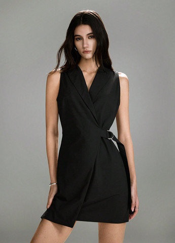 Материал Полиэстер / Цвет Черный / Фасон На запах, Платье-жакет / Длина изделия Мини / Стиль Кэжуал