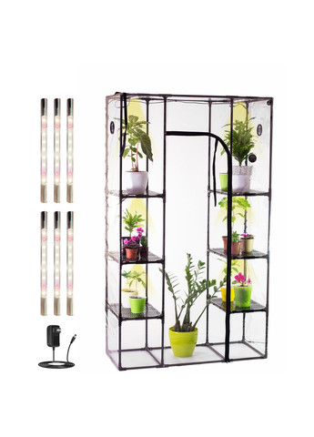 Мини теплица с фито света для дома, дачи, террасы или патио Sezam Manyloras Мини-теплица для домашних растений разработана по эскизам и пожеланиям любителей растений. Она предназначена для создания оптимального микроклимата для растений, обеспечивая им необходимую влажность, освещение и защиту от неблагоприятных факторов. Manyloras представляет собой трехъярусный стеллаж с металлическим каркасом. Высокая прочность каркаса достигается за счет использования стальных труб диаметром 16 мм с толщиной стенки 0,6 мм, а также полипропиленовых фитингов. Внешнее покрытие труб выполнено методом порошкового окрашивания. Каждый ярус теплицы, кроме нижнего, оснащен подсветкой в виде лампы со специальными LED-фитосветодиодами от компании Samsung. Эти лампы обеспечивают дополнительное освещение для растений в ситуациях, когда его недостаточно: например, на северной стороне комнаты, при маленьких окнах или если растение находится в глубине комнаты. Исследования компании Метаплант, которые длились 3 года, показали, что светильники Мetaplanт имеют благотворное влияние на все виды растений. Благодаря высоким показателям интенсивности и светоотдачи света, а также специально подобранному спектру, в теплице Manyloras все виды растений, включая микрозелень и рассаду, демонстрируют интенсивное развитие. Характеристики теплицы Manyloras: Светоотдача: 220 Лм/Вт Спектр светильника: Full Spectrum Освещенность*: 6*3300 Лк Световой поток (Φv): 6*757 Лм Плотность светового потока*: 106 мкмоль/м2/с Теплица Manyloras рекомендуется для растений, которые нуждаются в умеренном освещении. Это, в первую очередь, большинство видов тропических растений: орхидеи, филодендроны, драцены, драцены окаймленные, пилеи, алоказии Полли, бромелиевые, фикусы и другие. Преимущества теплицы Manyloras: Оптимальный микроклимат для растений Защита растений от вредителей и домашних животных Подсветка Full spectrum Прочный и устойчивый каркас Занимает мало места в квартире Возможность размещения высоких растений Универсальный дизайн, подходящий для любого интерьера Прозрачный чехол "гибкое стекло" Удобный доступ для ухода за растениями Контроль температуры и влажности внутри теплицы Безопасное для людей и животных электропитание 12 В Вес теплицы: 13.9 кг Размер теплицы в собранном виде: 196х114х49 см Размер теплицы в упаковке: 100х26х32 см