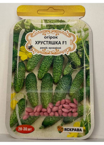 Огурец д/ж Хрустяшка – гибридный сорт раннего срока созревания. Растение прекрасно опыляется пчелами, зеленцы получаются средней длины, поэтому подходят для закатывания в банки, употребления в свежем виде. Овощи пригодны для транспортировки, выделяются отличной лежкостью, не утрачивая свойства хрустить. Выращивать огурец можно на грядках, в теплицах. Правильная агротехника позволяет собирать с одного квадратного метра посадки до 13 кг вкусных полезных плодов, которые насытят организм калием, клетчаткой, витаминами. В 100 г мякоти огурца всего 15 ккал, поэтому она идеальна для диетического питания, помогает усваивать белковую пищу. Описание Огурец сорта Хрустушка F1 и отзывы: созревают овощи за 45 дней с момента появления ростков; · цветки опыляются пчелами, другими насекомыми; · завязи формируются пучками, до трех штук; · форма плода цилиндрическая; · комковатая средняя; · размер зеленца 7-8 см; · вкус хороший, без горечи; · урожай убирают в июле-сентябре; · устойчивость к грибковым заболеваниям; · выдерживает ночные похолодания. Посадка хрустящих огурцов (семена) в открытый грунт. Для раннего урожая семена F1 можно высаживать на рассаду в марте-апреле. В грунт его высевают в мае, но тогда грядку покрывают, пока не минуют обратные заморозки. Между растениями должно быть 30-70 см, земля подходит рыхлая суглинистая. Культуру регулярно поливают, прокапывая междурядья. С началом формирования плодов, кустики осматривают через день, чтобы своевременно собирать зеленцы.
