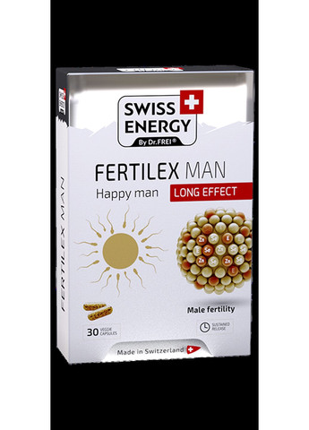 Fertilex Men от Swiss Energy — это сбалансированный нутрицевтический комплекс, созданный специально для мужчин, планирующих отцовство Размер порции: 1 капсула Количество порций: 30 Количество на порцию % от суточной потребности Мио-инозитол 333 мг L-карнитин 100 мг L-аргинин 100 мг Цинк 5 мг Селен 50 мкг Витамин Е 20 мг