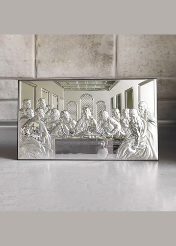 Икона от итальянского производителя - компании Valenti & Co. Изделие состоит из основания (коричневая матовая МДФ, покрытая несколькими шарами лака для защиты от повреждений) и лицевой стороны (чеканка с серебряным и золотым покрытием, которую дополняет цветная эмаль и позолота). При изготовлении используют материал MIRO-SILVER – это новая металлическая обработка поверхности, в которую входит шар серебра, полученный с помощью методики вакуумного напыления, придающей покрытию жесткость и большую устойчивость к окислению. На обороте отверстие и подножка, поэтому икону можно разместить на стене или поставить в Вашем доме. Значение этой иконы многогранно, оно является знаменем истинной веры и объединения всего человечества. Сцена, изображенная на образе, положила начало традиции Святого Причастия. Изделие упаковано в мешочек и фирменную коробку с тиснением логотипа Valenti, что позволяет использовать его как отличный подарок для любого – друзей, родственников, коллег. Рекомендации по уходу: не использовать химические средства, протирать мягкой сухой тряпкой.