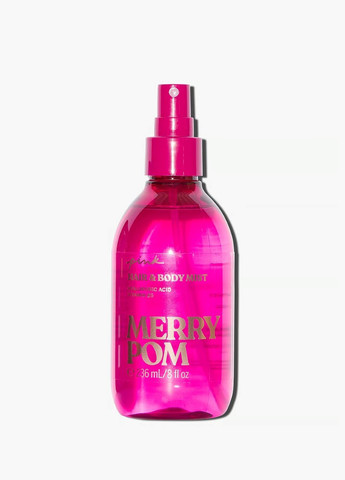 Парфюмированный мист для тела и волос Merry Pom от Victoria´s Secret Pink. Коллекция средств по уходу за телом, создана для поддержания кожи мягкой и здоровой. Идеальное сочетание аромата и пользы. Этот прохладный мист для всего тела и волос состоит из гиалуроновой кислоты и витамина B5 и не содержит спирта. Распылите на волосы и тело в любое время, когда вам понадобится легкая порция прохладного увлажнения и сладкого аромата.  Объем: 236 мл.