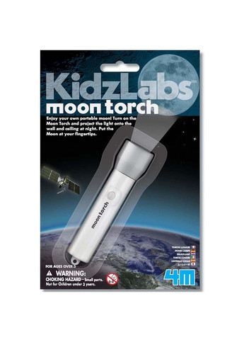 Хотите подержать Луну в ладони? Или любоваться ею на потолке в комнате? Это вполне возможно с набором для исследований 4M Лунный фонарик. Прекрасный подарок для юных астрономов от 5 лет дошкольного возраста. Фонарик оснащен специальной линзой с детализированным изображением Луны. Яркий луч света проходит через изображение на пленке, и линза увеличивает его в несколько раз. Направьте фонарик на светлую стену или потолок в темноте, и вы увидите Луну с кратерами. Покрутите переднюю линзу, пока изображение не станет четким. Собирайтесь вечером с близкими на занятие по астрономии! Набор из серии Science развивает любопытство, воображение, фантазию, кругозор, знакомит с основами астрономии. Благодаря таким игрушкам дети больше интересуются науками и меньше времени проводят перед экранами гаджетов. На обратной стороне упаковки есть краткая инструкция с картинками и интересные факты об исследовании спутника Земли. В комплекте 3 батарейки AG13/LR44. **В наборе:** - Лунный фонарик – 1 шт. - Батарейки AG13/LR44 – 3 шт. - Инструкция с фактами – 1 шт.