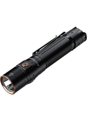 Описание ручного фонаря Fenix LD30R: Мощный, прочный и легкий — фонарь Fenix LD30R имеет все эти характеристики, претендуя на звание едва ли не лучшей модели EDC среди аналогичных осветительных устройств в ассортименте бренда. Благодаря компактным размерам, фонарь можно носить с собой на повседневные прогулки для подсветки дороги в темное время суток. При этом его защищенность от влаги и яркость достигает 1700 люмен, актуальны для любителей путешествий и активного отдыха, для которых мощный и долговечный источник освещения является гарантом не только комфорта, но и безопасности. Под закаленным стеклом линзы находится единственный светодиод Luminus SST40, излучающий световой поток цветовой температуры около 6000К. Это холодный белый свет, превосходящий в дальнобойности луч теплого спектра. Гладкий рефлектор также увеличивает параметры дальности луча 257 метров. Голову конструкции обрамляет металлический безель, защищающий линзу от повреждений. Помимо точечной подсветки объектов на разной степени удаленности фонарь можно использовать для мягкого освещения небольшой площади – для этого нужно закрепить на модели диффузионный фильтр Fenix AOD-S V2.0 (приобретается отдельно). Режимы работы В фонаре Fenix LD30R есть 7 режимов работы. Они распределены на 2 группы по типу освещения: 5 вариантов освещения в основной группе с постоянным светом и 2 режима в мерцающей группе. Основная группа Турбо: 1700 лм – 18037 кд – 267 метров – 2 часа 10 мин; Высокая: 600 лм – 6500 кд – 161 метр – 2 часа 50 мин; Средний: 150 лм – 1605 кд – 80 метров – 14 ч. 40 мин; Низкий: 50 лм – 510 кд – 45 метров – 37 ч 25 мин; Лунный свет: 1 лм – 16 кд – 8 метров – 750 час. Мигающая группа Стробоскоп: 1700 лм; SOS: 50 лм. Имейте в виду! Время работы в режиме Турбо указано с учетом продолжительности работы в режиме с менее ярким светом. Они последовательно активируются в порядке понижения мощности, когда температура внутренней электроники достигает критического значения в 60℃, и срабатывает интеллектуальная защита от перегрева. Модель имеет комбинированный тип управления: стандартный электронный переключатель расположен в головной части фонаря, а вторая кнопка вынесена в хвост конструкции. Кнопки отвечают за разный функционал: Вкл. / выкл. мгновенного освещения: зажим хвостовой кнопки активирует мгновенный свет, который выключается, когда пользователь отпускает кнопку. Вкл. / выкл. постоянного света: нажатие хвостовой кнопки до упора активирует постоянный свет, который не выключается, если убрать палец из переключателя. Выключить свет можно повторным нажатием этой же кнопки. Изменение группы режимов: фонарь автоматически активируется в основной группе режимов. Переход в мерцающую группу осуществляется зажимом бокового переключателя в течение 0.5 секунд при включенном освещении. Аналогичным образом можно перейти обратно в основную группу. Переключение режимов в основной группе: нажатие бокового переключателя при включенном свете изменяет режимы в следующем порядке: Лунный свет → Низкий → Средний → Высокий → Турбо. Переключение режимов в мигающей группе: однократное нажатие бокового переключателя после перехода в мигающую группу циклически изменяет режим в порядке: Стробоскоп → SOS. Память последнего режима – полезная опция в фонаре для тех, кто не хочет тратить лишнее время на поиск любимой яркости. Эта функция работает дл