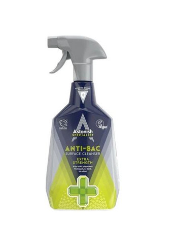 Антибактериальное моющее средство Astonish Antibacterial Cleanser серии Specialist — это помощник на кухне, который одновременно справляется с двумя задачами: тщательно очищает различные поверхности и уничтожает микробы. В состав средства входят обеззараживающие вещества, которые на 99,9% эффективны в уничтожении сальмонеллы, кишечной палочки, листерии. При этом продукт экологически безопасен и нетоксичный, его можно использовать не только для очистки рабочих поверхностей на кухне, но и для дезинфекции разделочных досок, столовых приборов, микроволновок, кухонных шкафов, детских пеленальных столов. При умеренном загрязнении моющее средство достаточно равномерно распределить по поверхности и протереть чистой салфеткой. Для удаления стойких устаревших загрязнений распылите жидкость и дождитесь ее полного высыхания перед протиранием. Не используйте для стерилизации детской посуды, а также для чистки зеркал и окон. Не допускайте контакта изделия с ковровым покрытием и обивкой мебели.