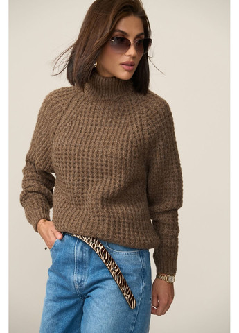 Уютный свитер с воротником-стойкой, деликатно окутывающий шею. Изделие прямого силуэта, выполненное объемной фактурной вязкой из премиальной пряжи, содержащей шерсть мериноса, альпаки и мохер. Комфортный рукав-реглан. Длина 64 – 68 см (+- 2 см). Ширина в спокойном нерастянутом состоянии 45 – 50 см., в растянутом состоянии 51 –56 см. Длина рукава от горловины 70 – 71 см.