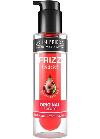 Описание Сыворотка для облегчения укладки непослушных волос - John Frieda Frizz Ease Original 6 Effects Serum Вам хотелось бы распустить волосы и любоваться своим отражением в зеркале, созерцая, как ваши послушные пряди красиво рассыпаются по плечам? Но вместо гладких, мягких локонов вашу голову венчает копна непослушных, жестких волос, торчащих в разные стороны так, как ему вздумается? Если вы устали бороться с непослушными волосами и хотите быть совершенной, то воспользуйтесь отличным средством Frizz Ease Original 6 Effects Serum от известной торговой марки John Frieda. Эта высококачественная сыворотка, предназначенная для облегчения укладки непослушных волос, уж точно найдет подход к вашим неукротимым буйным прядям! Создайте прическу своей мечты! Активные составляющие этого продукта помогут вам восстановить поврежденные участки тканей волос, а также увлажнить и питать пряди. Теперь ваши волосы будут здоровыми и ухоженными, а вы будете выглядеть роскошно! Способ применения после использования шампуня и кондиционера нанесите на мокрые волосы (не используйте полотенце для удаления влаги из волос!). Выдавите на ладонь небольшое количество сыворотки и тщательно распределите средство по волосам. Используйте такое количество, которое соответствует длине и густоте ваших волос. Не смывайте продукт! Приступайте к дальнейшей укладке. Состав Cyclopentasiloxane, Dimethiconol, Ethylhexyl Methoxycinnamate, Paraffinum Liquidum, Hydrolyzed Silk, Parfum, Linalool, Butylphenyl Methylpropional, Limonene.