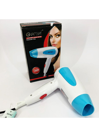 Фен Gemei GM-1756 является мощным инструментом и надежным помощником каждого мастера-парикмахера. Вы с легкостью высушите мокрые волосы или сделаете укладку, если под рукой имеется данная модель фена и несколько укладочных средств. Фен имеет 2 температурных режима и 2 скорости работы. Благодаря складной ручке прибор удобно брать с собой в дорогу. Устройство абсолютно безопасно и не пересушивает волосы. Так что вы можете не беспокоиться о здоровье своих волос. Характеристики: Тип: Дорожный; Функция ионизации: Нет; Подача холодного воздуха: Нет; Потребляемая мощность: 1200 Вт; Количество температурных режимов: 2; Количество скоростей: 2; Насадки: Концентратор; Защита от перегрева: Нет; Складная ручка; Есть петля для подвешивания; Длина кабеля: 1.8 м; Комплектация: Фен; Коробка