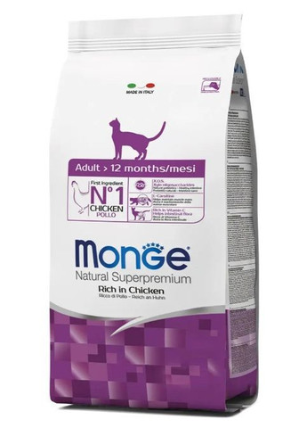 Усовершенствованная формула корма содержит XOS (ксилоолигосахариды), пребиотики последнего поколения, поддерживающие нормальное функционирование пищеварительной системы. В составе корма присутствуют растительные компоненты, например шиповник, экстракт юки шидигера и масло микроводорослей (Schizochytrium sp.), способствующие правильному развитию организма растущего животного и укреплению его иммунитета. Корм Monge Natural Superpremium All breeds Puppy and Junior Monoprotein заботится о всестороннем развитии и росте вашего маленького питомца, предоставляя ему все необходимые компоненты для поддержания активного и здорового образа жизни. Преимущества и особенности: исключительная натуральная продукция премиумкласса – идеальное решение для всех, кто заботится о здоровье питомца; отсутствие искусственных красителей и консервантов гарантирует наибольший уровень натуральности; подходит для котят всех пород и размеров, учитывая их уникальные потребности на каждом этапе роста; монопротеиновая формула обеспечивает полноценное питание питомца, благодаря чему корм подходит для аллергиков; инновационный компонент XOS играет ключевую роль в поддержании природного баланса кишечной микрофлоры, способствуя оптимальному усвоению питательных веществ; шиповник обогащает корм антиоксидантами, помогая нейтрализовать свободные радикалы и поддерживая общее здоровье; масло микроводорослей, как источник натуральных полиненасыщенных жирных кислот, поддерживает неврологическое здоровье и развитие мозга; таурин гарантирует правильное развитие сердечной системы питомца, обеспечивая ему крепкое и здоровое сердце; экстракт юки шидигера эффективно устраняет неприятный запах фекалий. Состав: Говядина (сушеная 30% и свежая 10%), рис, животный жир (куриный жир, очищенный на 99,5%), кукуруза, кукурузный глютен, картофельный белок, картофель, гидролизованные животные белки (печень), сухая свекольная пульпа, (Schizochytrium sp. 1%), пивные дрожжи, гороховая клетчатка, минералы, продукты переработки дрожжей (маннаноолигосахариды MOS 1%), ксилоолигосахариды (XOS 0,3%), юкка шидигера (0,1%), продукты переработки трав (шиповник). Аналитический состав/кг: сырой белок: 34%, сырая клетчатка: 3%, сырой жир: 19%, сырая зола: 7,5%, кальций: 1,9%, фосфор: 1,3%, n-3 жирные кислоты: 0,6%, DHA: 0,08%, n-6. Пищевые добавки/кг: Витамин А (ретинилацетат) 30 700 МЕ, Витамин D3 1 610 МЕ, Витамин Е (альфа-токоферил-ацетат) 172 мг, Селен (селенит натрия 0.47 мг) 0,2 мг, Марганец (сульфат 9 мар цинка 187 мг) 150 мг, Медь (сульфат меди (II) пентагидрат 50 мг) 12 мг, Железо (железо (II) сульфат моногидрат 326 мг) 107 мг, Йод (Кальция йодат безводный 2,6 мг) 1,7 мг, L-карнитин 1000 мг, Таурин 2000 мг. Аминокислоты/кг: L-карнитин 1000 мг/кг, DL-метионин технически чистый 1000 мг/кг, таурин 1000 мг/кг. Технологические добавки/кг: Экстракты токоферола из растительных масел. Энергетическая ценность: 4215 ккал/кг. Рекомендации по кормлению: Индивидуальное количество пищи для кошек может быть адаптировано в зависимости от их размера, физической активности и условий жизни. Рекомендуемый дневной рацион, представленный в таблице, предлагается разделить на трехдневные приемы кормления для обеспечения оптимального питательного баланса. Важно поддерживать постоянный доступ ко свежей и чистой воде. В случае изменения типа корма и/или рациона рекомендуется постепенное введение нового продукта в течение минимум 1 не