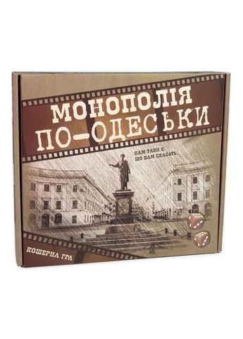 "Монополия по-Одесски" (Strateg 30318) - это игра для того, чтобы Вы хоть где-то могли делать деньги. Предлагаем Вам стать монополистами любой отрасли, заработать возможный капитал или остаться единственным игроком, не ставшим Банкротом. Перемещаясь по игровому полю, игрок может посещать кофейни, участвовать в аукционах, строить одесские дворики и отели, занимать деньги в Банке под залог. Кроме того, игроки могут взыскать арендную плату с других участников игры, останавливающихся на их участках. При этом игрокам придется платить налоги, штрафы, административные взыскания, иногда оказываться в тюрьме и освобождаться от нее, дав «на лапу» кому надо. Но есть шанс получить отличный выигрыш или потерять кругленькую сумму, залетев в казино. Эта игра с любого игрока со временем может сделать кашерного бизнесмена. ♦ Возраст: 8+ ♦ Комплектация: игровое поле, фишки, кубики, деньги, игровые дома, карты, инструкция. ♦ Количество игроков: 2-4 Мова: украинский.