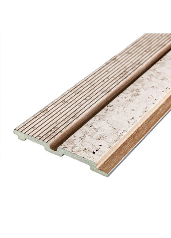 Стеновые рейки WPC Описание: Стеновые рейки WPC – строительный материал для внутренней отделки, имитирующий натуральную древесину. Фактура: гладкая, имитация деревянной рейки Рельсы состоят из следующих слоев: Полимерный слой, защищающий от потертостей и мелких механических повреждений, обеспечивает долговечность использования, а УФ защита помогает предотвратить выгорание, сохраняя цвет декоративного слоя насыщенным, за счет чего рейка долго имеет свой первоначальный эстетический вид. Декоративный слой: пленка с цветной печатью высокого разрешения, которая полностью имитирует фактуру природных материалов, благодаря четкому и детализированному изображению. Основной слой WPC: представляет собой композитный материал, сочетающий в себе древесные волокна (или стружку) с полимерными материалами, обеспечивающий материалу прочность, стойкость к влаге и устойчивость к воздействию внешней среды. Температурный режим: от -50º до +80ºС Применение: внутренние отделочные работы: декорирование стен во всех видах жилых помещений (кухня, гостиная, детская или спальня, входная группа) и коммерческих помещений (офисные помещения, зоны рецепций, магазины, салоны красоты или фитнес-центры), декорирование мебели, дверей и других ровных поверхностей. Свойства и преимущества материала: Устойчивость к влаге: материал WPC обладает высокой устойчивостью к воздействию влаги, не набухает и не деформируется. Устойчивость к гниению и насекомым: в отличие от древесины WPC не подвержен гниению и не привлекает насекомых. Устойчивость к воздействию ультрафиолета: стеновые панели WPC сохраняют свой цвет и структуру под воздействием ультрафиолетового излучения. Привлекательный внешний вид: декоративный пласт имитирует натуральное дерево, что позволяет создавать стильные и эстетические интерьеры, снижая при этом использование чистой древесины. Простота обслуживания: стеновые панели WPC обычно не нуждаются в сложном уходе. Они не требуют окрашивания, обработки антисептиками и формальдегидами, сохраняют свой внешний вид в течение длительного времени. Расчет нужного количества материала: Измерьте длину и высоту оклеиваемой поверхности. Умножьте длину на высоту каждой поверхности в метрах и составьте полученные результаты, чтобы получить площадь. Например, после измерений вы получили: Длина стены 3,2 м. Высота стены 2,7 м. 3,2*2,7 = 8,64 м². ) и округлим в большую сторону: 8,64/0,456 = 18,95 округляем до 19.В процессе монтажа могут возникнуть отходы, связанные с резкой рельсов, поэтому рекомендуется добавить в расчет запасные 1-2 шт. Инструкция по монтажу: Подготовьте поверхность, на которую крепятся рельсы. Их можно устанавливать на оштукатуренные стены, гипсокартонные плиты и деревянные материалы. Если стена оклеена обоями, советуем их снять. Для резки рейки используйте циркулярную пилу или лобзик. Прикрепить рейку к нужной поверхности можно с помощью монтажного клея, желательно на полиуретановой или силиконовой основе. Пользуясь инструкцией, нанести клей на заднюю часть рейки, после чего установить на нужную поверхность. Рейки можно собирать вертикально или горизонтально. Кроме монтажного клея, можно использовать строительный степлер, чтобы закрепить их на стене. Прикреплять скобы необходимо к краю паза рельса, чтобы они не были видны. Необходимые для монтажа материал