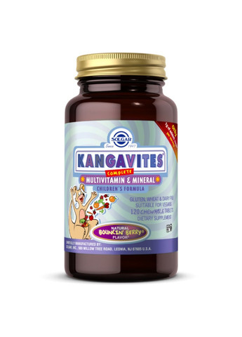 Solgar Kangavites® подходит для веганов и предлагает ряд витаминов и минералов для вашего ребенка, включая витамины A, C, D, E, витамины группы B, кальций, магний, цинк и многое другое в восхитительном ягодном вкусе. Дети 2 и 3 лет: в качестве диетической добавки для детей принимайте одну (1) жевательную таблетку ежедневно или по указанию врача. Взрослые и дети от 4 лет: в качестве диетической добавки для взрослых и детей принимайте две (2) жевательные таблетки в день или по указанию врача.