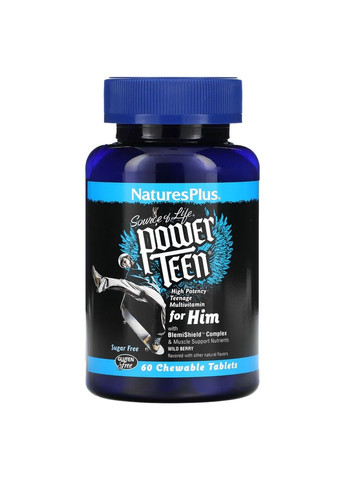 высокоэффективная мультивитаминная добавка для девочек-подростков Содержит комплекс полезных для женщин ингредиентов и пробиотики. Без глютена Вегетарианский продукт Гипоаллергенный продукт Содержит Vitashine Питательная поддержка для производства природной энергии и общего состояния здоровья. Чем бы ни восхищались девушки — от путешествий по интернету до серфинга — им нужны силы и энергия, которые можно получить только из высокоэффективных диетических добавок высокого качества. Power Teen® для девочек-подростков – это высокоэффективная мультивитаминная женская диетическая добавка, наполненная взрывным ароматом лесных ягод. Этот уникальный комплекс для юных женщин содержит экстракты клюквы, пажитника и ямса для укрепления здоровья мочевыводящих путей, молочной железы и здорового гормонального баланса. Экстракт клюквы BlemiShield и пробиотики поддерживают естественные механизмы защиты организма. Рекомендации по применению В качестве диетической добавки использовать юным женщинам по две жевательные таблетки каждый день. Другие ингредиенты Натуральные ароматизаторы, натуральный ароматизатор «Малина», натуральный ароматизатор «Вишня», лимонная кислота, магния стеарат, гуаровая камедь, натуральный краситель (свекла), стевия (ребаудиозид A, стевиозид), шиповник (плоды) (Rosa canina), ГМО, папая, морковь, плоды манго, шпинат, брокколи, спирулина (естественно богатая необходимыми питательными веществами), плоды мальпигии (Malpighia glabra), инозитол, холин, цитрат калия. Не содержит искусственных красителей и консервантов. Не содержит распространенных аллергенов, дрожжей, пшеницы, сои и молока.