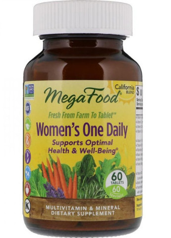MegaFood делает полезные добавки, используя единственный в своем роде процесс для доставки самого достоверного питания - гораздо больше, чем только витаминов. Функциональное действие: Витамины для женщин, Womens One Daily, MegaFood - это продукт, который содержит натуральные травы, витамины и минералы, необходимые для женщин. Препарат представляет собой смесь 25 витаминов и минералов, а также экстрактов из апельсин, клюквы, ягод, элеутерококка и астрагала, который укрепляет общее здоровье. В составе продукта также цветы красного клевера, куркума, женьшень, семена расторопши, органические грибы шиитаке и ягоды лимонника. Сбалансированный для женского здоровья продукт укрепляет сердечно-сосудистую систему, повышает физическую выносливость, помогает управлять ежедневным стрессом. Ингредиенты способствуют нормализации гормонального фона (усиливают овуляцию), поддерживают мочеполовую систему, обеспечивают антиоксидантную защиту. 100% натуральные продукты поддерживают здоровый и сияющий вид, а также нейтрализуют действие свободных радикалов и способствуют их выведению из организма, продляют молодость. При ежедневном приеме мультивитаминных комплексов, как правило, восстанавливается обмен веществ в организме, уходит усталость, повышается иммунитет. MegaFood является пионером в индустрии натуральных продуктов и первой компанией, производящей витамины с нуля, с свежими целыми продуктами. Продукты и ингредиенты тестируются 3 раза в течение всего процесса производства, чтобы убедиться, что все соответствует строгим стандартам чистоты. Применение: 1 таблетка в день. Можно принимать в любое время дня, даже натощак. Противопоказания: Индивидуальная непереносимость компонентов. Предупреждение: При беременности, кормлении грудью, приеме каких-либо медицинских препаратов или наличии каких-либо заболеваний следует проконсультироваться с врачом перед употреблением любых пищевых добавок. В случае возникновения каких-либо побочных реакций прекратите использование и проконсультируйтесь с врачом. Хранить в недоступном для детей месте. Не использовать, если внешняя защитная мембрана отсутствует или повреждена.