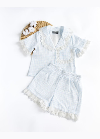 Пижама женская муслиновая. Рубашка на пуговицах, брюки на резинке.