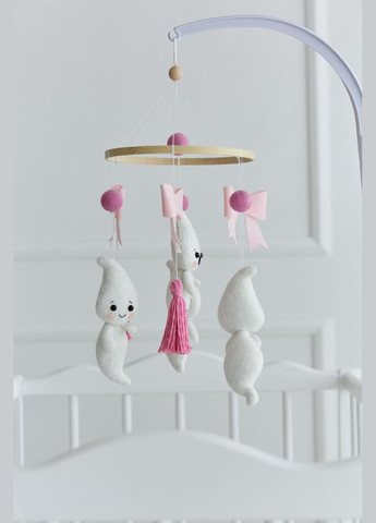 Детский мобиль на кроватку WoollyFox "Добрые привидения" - это нежная ночная история, оживающая над кроваткой малыша. Четыре улыбающихся привидения плывут среди шаров и бантиков, создавая атмосферу уюта, покоя и обаяния. Эти добрые создания не пугают, а наоборот - оберегают сон ребенка, даря чувство безопасности с первых дней жизни. Каждая деталь изготовлена вручную из мягкого фетра и наполнена гипоаллергенным холлофайбером. Мобиль можно адаптировать под ваши пожелания — изменить цвета, добавить или заменить элементы композиции. Примечание. Поскольку все мобилы изготавливаются вручную, возможны незначительные отличия в форме, размерах или расположении элементов. Важно: В комплект не входят музыкальный блок и крепеж.