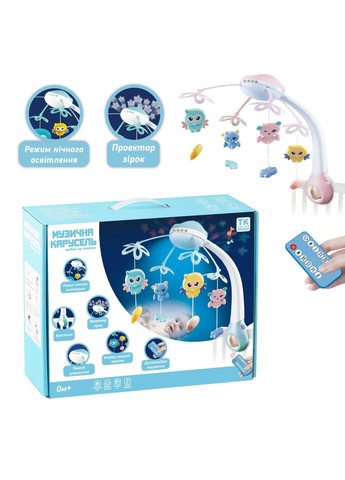 Погремушка мобиль для кроватки и коляски Игрушка карусель, которая поможет малышу заснуть Игрушечная карусель для детей с музыкальным плеером и проектором – незаменимое дополнение к кроватке каждого ребенка. Разноцветные подвесные погремушки, вращающаяся подставка и возможность воспроизводить колыбельные привлекут внимание вашего ребенка, помогут ему успокоиться и сладко заснуть. Проектор с функцией ночника создаст уютную атмосферу вокруг вашего спящего ребенка. Карусель управляется с помощью пульта дистанционного управления – большое количество функций и настроек позволяет настроить ее параметры в соответствии с потребностями малыша. Мобиль с цветными погремушками Карусель –ndash; это не просто игрушка, на которую ребенок может смотреть и слушать. Съемные погремушки позволят вашему ребенку прикасаться к нему и играть с ним. После игры с погремушками музыкальный плеер поможет малышу заснуть, а встроенный в карусель проектор заставит разноцветные звездочки сиять вокруг люльки. Крепление для кроватки и коляски Карусель имеет универсальный крепеж, позволяющий устанавливать его в большинство кроваток и колясок. Мотор карусели можно отсоединить и прикрепить отдельно как музыкальный плеер, беря его с собой на прогулку и в путешествие. Пульт дистанционного управления Входящий в комплект пульт дистанционного управления позволит настроить карусель. С помощью пульта можно включать проектор, таймер, изменять мелодию и выполнять другие действия. Уложить ребенка спать с таким аксессуаром легко! Преимущества • вращающаяся карусель с игрушками, музыкальным плеером и проектором • пульт дистанционного управления • регулировка громкости и выбор колыбельных • съемные игрушки - погремушки Безопасный: после присоединения он стабилен и движется. Практическая светодиодная лампа практична Карусель имеет 3 режима: нижний свет, верхний свет (проектор - звезды), верхний и нижний свет одновременно. Лампы светят приятным, успокаивающим светом. 13 мелодий по выбору! Изменяйте мелодии с помощью пульта! Вы можете выбрать среди прочего: детский смех, звуки природы, звуки животных. Спецификация: упакованы в красочные картонные коробки, 13 мелодий (детский смех, звуки природы, звуки животных), пульт дистанционного управления (включает аккумулятор), карусель питается от батареек 3хААА (не входят в комплект), таймер 10/20/30 мин. Отправим по всей Украине оптом и в розницу.