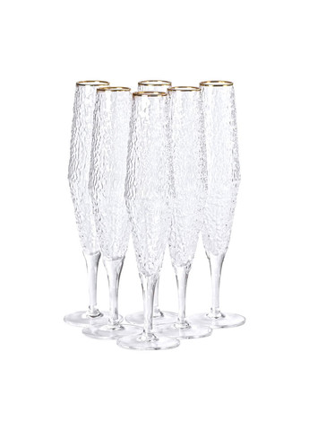 Бокалы для шампанского объемом 250 мл с высокой ножкой – это идеальный выбор для тех, кто ценит стиль и элегантность в каждом аспекте своей жизни. Набор состоит из шести изящных бокалов, выполненных из прозрачного стекла, что позволяет наслаждаться не только вкусом, но и визуальной красотой вашего любимого игристого напитка. Высота бокалов в 25 см и их вытянутая форма обеспечивают комфортное держание и добавляют нотку изящества к любому торжеству. Фактурная поверхность бокалов не только делает их уникальными, но и игриво отражает свет, создавая праздничную атмосферу. Золотой ободок придает бокалам роскошь и завершенность, что делает их идеальными для особых случаев и вечеринок. Основные характеристики: Количество: 6 штук Объем: 250 мл, идеально подходит для шампанского Высота: 25 см, для удобного удержания Материал: стекло, прозрачное для оценки цвета напитка Особенность: фактурная поверхность для уникального дизайна Декор: золотой ободок для роскошного вида Преимущества: Современный и стильный подачи шампанского Комфортное держание благодаря вытянутой форме Улучшенные тактильные ощущения во время использования Возможность подчеркнуть эстетику и игристость напитка Эти бокалы предназначены для любителей шампанского и игристых напитков, а также для тех, кто хочет добавить изысканность в свои праздники. Они идеально подойдут для свадеб, юбилеев, новогодних вечеринок и других торжеств, где важна каждая деталь. Уход за бокалами не требует особого труда: рекомендуется мыть их вручную с мягкими моющими средствами, чтобы сохранить блеск и целостность золотого ободка. Избегайте использования абразивних губок и посудомоечних машин, чтоби предотвратить повреждение декора. Храните бокали в вертикальном положении, чтоби избежать царапин и сколов на поверхности. Выбирая набор бокалов для шампанского 16-4, вы делаете ставку на качество, стиль и удобство, которые станут настоящим украшением стола и создадут незабываемую атмосферу для вас и ваших гостей.