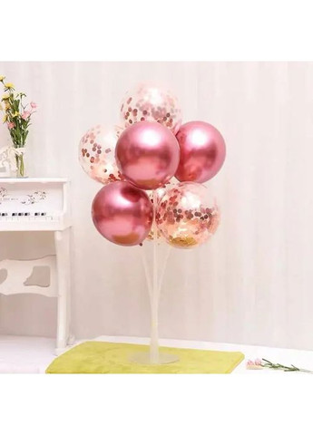 Товары в комплекте Подставка стойка на 7 шаров 70 см (352897380341) 1 Шар фольгированный Сердце 45 см Металлик Розовый (03602) 1 Шары латекс 12" 30 см Прозрачные с блестящими конфетти Розовый (00760)