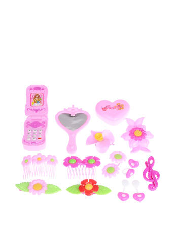 все девочки с малых лет стараются подражать своим мамам и пробуют носить украшения, делать прически и пользоваться косметикой. Специально для таких маленьких модниц был создан данный игровой набор. В него входят все необходимые инструменты и аксессуары для создания модного образа. Сделать красивую прическу помогут разнообразные заколки и резинки с декоративными элементами, а также гребни для волос, украшенные цветочками. Дополнят образ украшения, выполненные в бело-розовой гамме, а так же мобильный телефон ярко-розового цвета. Оценить полученный результат поможет удобное зеркальце, которое также входит в набор. Наборы украшений и аксессуаров помогают девочкам в развитии чувства собственного стиля