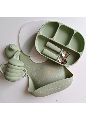 Набор посуды, в котором есть все необходимые девайсы и позиции посуды для успешного начала введения прикорма МАКСИМУМ ОЛИВКА+БЕЖ В стоимость набора входят: Секционная тарелка на три отделения в комплекте с крышкой! Тарелка имеет четыре крепких присоска. Это идеальный вариант тарелки для любого детского столика, даже с дефектами, даже для маленького, даже не идеально ровного 👌 Глубокая тарелка в виде солнца на одной присоске в комплекте с крышкой. Крышка для глубокой тарелки очень приятна, потому что малыш не доел или оставшееся приготовленное можно положить в тарелку, накрыть крышкой и поставить в холодильник Два комплекта приборов: силиконовые для начала, малыш будет использовать как грызунец, а также металлические уже с 8-9 месяцев, когда малыш самостоятельно учится есть Поильник с двумя сменными крышками. Однозначно малыша легче пить из крышки "анатомический носик", но впоследствии у малыша просыпается интерес к трубочке. Пить воду, кефир, смузи удобно через открытую широкую трубочку Нагрудник с очень широким удобным карманом, который ловит остатки пищи "мимо ротика". Имеет минималистичный красивый принт, не трескающийся Магнитный Планер Прикорма, в котором указаны все дополнительные продукты, которые вы должны ввести во время прикорма, а также колонки, в которые можно указать продукт, понравившийся малышу или нет Магнитный Планер Меню сэкономит Вам много времени, сначала Вы заранее планируете меню малыша в неделю, составьте список некоторых закупок Магнитный маркер в подарок Ниблер-полезный девайс для знакомства малыша с большим вкусом. Также можно использовать во время нажатых десен, положив в серединку ниблера замороженный сок или кусочек бананчика. Новые ниблеры имеют функцию "очистки язычка"