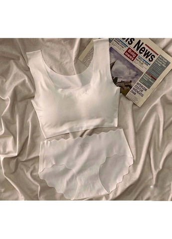 Бесшовный набор белья. Размер M Цвет: белый Трусики средней посадки. Мягкая вставка из тонкого поролона (можно вытащить)
