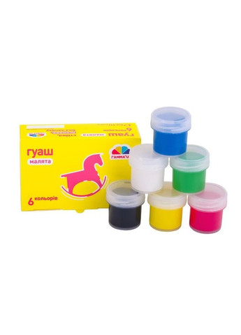 Гуашь – одна из первых красок, которые использует ребенок на своем творческом пути. Она яркая, быстро сохнет, не имеет неприятного запаха, а главное безопасна для ребенка. Рисовать гуашью можно кисточками разных размеров и форм, поролоновыми спонжами или просто пальчиками. Никаких пределов для творчества. Серия Малыш создана специально для детей дошкольников. Гуаш ГАММА'UA изготовлен в Украине по новейшим технологиям. Благодаря этому она имеет приятную структуру, оптимальную консистенцию, не течет и имеет идеальную густоту. После высыхания рисунки имеют бархатную матовую структуру и яркие цвета. Современные родители выбирают для своих детей именно гуашь ГАММА'UA Малыши из-за ее преимуществ перед аналогами: Набор из 6 цветов – оптимально для дошкольников, которые учатся работать с цветом. Большое количество оттенков может запутать ребенка и отвлечься от рисования. В набор вошли следующие цвета: зеленый, красный, желтый, синий, черный, белый. Маленькие удобные для ребенка контейнеры с красками объемом 10 мл.
