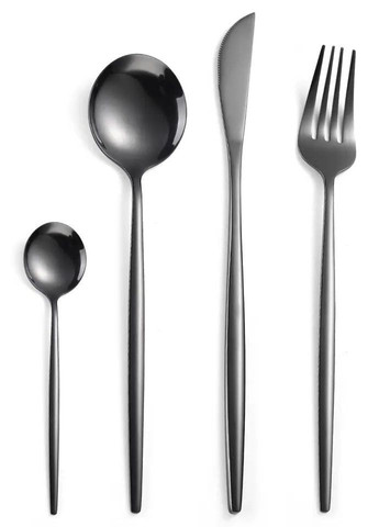 Набор качественных столовых приборов REMY-DECOR черного цвета Дарите стиль и изящество вашему столу с набором столовых приборов REMY-DECOR "Innsbruck" в утонченном черном цвете! Наш набор приборов "Innsbruck" — это прекрасное сочетание элегантности и функциональности, которые привнесут неповторимый шарм и современность в ваш столовый сервиз. В комплекте четыре утонченных элемента столового сервирования - нож, вилка, ложка и чайная ложка, каждый из которых создан с особой заботой о деталях. Черный цвет добавляет этим приборам изысканности и таинственности, приглашая к столу в атмосферу роскоши и уюта. Изготовленные из высококачественной нержавеющей стали, они обеспечивают долгий срок службы и прочность, а также легкость в уходе. Устойчивость к коррозии и сохранение блеска на протяжении многих лет - это особенности, которые вы найдете в каждом элементе этого набора. Набор столовых приборов "Innsbruck" - прекрасный выбор для ресторанов, кафе и для повседневного использования дома. Он подчеркнет стиль и утонченность вашего заведения или домашнего интерьера, делая каждый прием пищи особенным и запоминающимся. Эти великолепные приборы также станут прекрасным подарком для ваших близких и друзей, которые ценят качество и стиль. Они станут не только украшением вашего стола, но и символом вашего хорошего вкуса и заботы о близких. В состав набора входит: 1 нож – 23,3 см 1 вилка – 22,1 см 1 столовая ложка – 20 см 1 чайная ложка – 15,3 см Применение: Столовые приборы подходят для семейных пикников, походов, поездок и офисного использования, а также на подарок для вашей семьи и друзей. Выберите набор столовых приборов REMY-DECOR "Innsbruck" в черном цвете, чтобы добавить элегантности и изысканности вашей кухне или столовой. Подарите своему столу неповторимый штрих современного стиля и ощутите, как каждый прием пищи превратится в настоящий кулинарный опыт.