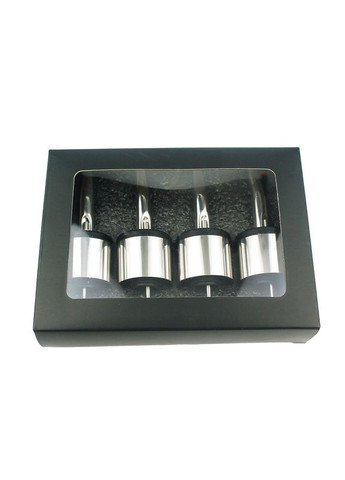 Набор гейзеров New Style дозатор Bar House pourer металлический 4 шт Серебристый Гейзер или дозатор для бутылок - барный инструмент, надевающий на бутылку (насадка на бутылку) для равномерного разлива напитков. Гейзер прост в использовании и гарантирует аккуратную и точную наливку напитка, позволяя быстро и легко создавать идеальные коктейли. Гейзер New Style - ваш лучший союзник в создании непревзойденных коктейлей! Характеристики: материал - нержавеющая сталь; длина - 11,5 см; диаметр - 1,5 см. Особенности: На одном конце имеется отверстие для отвода воздуха, а на втором стальной носик, через который наливаются напитки. Изделие подходит для бутылок шампанского и вина диаметром горлышка от 1.5 см. Рекомендуется ручная мойка под проточной водой без моющих средств. В нашем магазине Вы найдете много разнообразных аксессуаров и барного инструмента Bar House для легкого и быстрого приготовления и создания непревзойденных напитков и коктейлей.