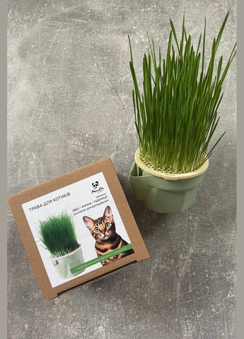 Польза травки: Ячмень – это злак, который играет немаловажную роль в здоровом питании кошек. Он содержит большое количество углеводов, белков и клетчатки. Эти компоненты способствуют укреплению иммунной системы кошки, поддержанию здорового пищеварения и нормализации веса, улучшают состояние шерсти. Овес, Пшеница содержат большое количество витаминов, которые нормализуют процесс пищеварения животного, стимулируют процесс очищения желудка от шерсти и предотвращают поедание домашним любимцем комнатных растений. В нашем миксе совмещен овес, ячмень и пшеница. Возраст вашего питомца должен превышать 6 месяцев для приема этих трав. Чтобы прорастить траву для котиков, выполните следующие шаги: 1. Выложите семена из пакетика в контейнер и залейте водой равномерно, чтобы все семена были влажными. 2. Закройте верхней крышкой и поставьте его в темное место для проращивания на 2-3 дня. Поливайте зерно в течение 7-10 дней (2-3 раза в день), сливая лишнюю воду из нижней части контейнера. 4. После первых 2-3 дней выставьте контейнер на светлое место. Вода в нижней части контейнера должна быть всегда свежей. Поэтому иногда изменяйте ее для лучшего прорастания корневой системы 5. При достижении высоты травы 7-10 см, ваш котик может кушать ее прямо из контейнера. Состав: Многоразовый контейнер для выращивания Семена: Ячмень – 1 урожай (25г) Овес – 1 урожай (25г) Микс (пшеница, овес, ячмень) – 1 урожай (25г) Игрушка (шарик) Инструкция