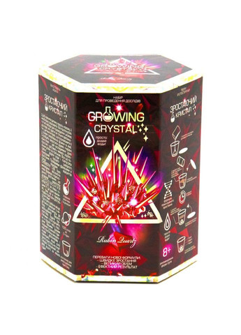 Интересный детский набор для опытов GROWING CRYSTAL GRK-01, рекомендованный для юных любознательных исследователей и любителей экспериментов от восьми лет, привлечет внимание и мальчиков, и девочек. С помощью специальных материалов и принадлежностей Ваш ребенок сможет самостоятельно вырастить в домашних условиях настоящие магические кристаллы. Увлекательное занятие вызовет восторг не только у детей, но и удивит взрослых. Чтобы получить растущие кристаллы, необходимо поместить заготовленные цветные элементы в специальный раствор, после чего начнется удивительный процесс. Набор включает в себя все необходимые детали, приспособления и материалы, включая пластиковую емкость, картонную заготовку, «жидкие кристаллы» и раствор для их выращивания, а также подробную инструкцию. Необычная игра поможет привить ребенку любовь к химии, познакомит его с новыми для него природными явлениями, расширит кругозор, поспособствует развитию воображения и логического мышления.
