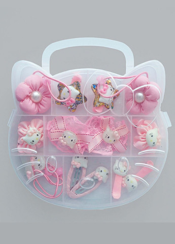 Набор резинок и заколок для волос в прозрачной пластиковой коробочке "Котенок" - розовые веселые украшения для локонов ваших малышей, которые дарят счастье и незабываемые впечатления, они создадут утро и радугу в пасмурный день. Размер пластиковой коробки 15, х17см, высота 2,5 см. В наборе 10 заколочек размером 4-5 см и 4 резинки с декором.