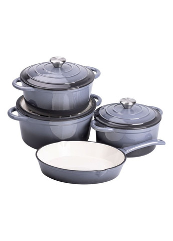 Набор эмалированной посуды IDILIA – состоит из 4-х эмалированных кастрюль с крышками. Эмалированная посуда – абсолютно безопасная благодаря специальному двухслойному покрытию – эмали, которая применяется как для внутреннего, так и для наружного покрытия изделий. Такая посуда идеально подходит для приготовления пищи, хранения готовой пищи, сервировки стола и транспортировки продуктов. Эмалевое покрытие защищает пищу от проникновения ионов металла, к тому же на гладкой поверхности эмали не способны размножаться бактерии. Главное преимущество – экологичность. Она абсолютно безопасна и не несет угрозы здоровью. Эмалированная посуда не впитывает запахи продуктов. Комплектация набора: Складные кастрюли со стальной эмалированной крышкой Объемом: 1,5л, 2,5л., 3,5л., 5л. Тип: набор кастрюль Количество предметов: 4 Форма: сферическая Крышка: металлическая с пластиковой ручкой-кнопкой Отверстие для выхода пара: нет Кромка: нержавеющая сталь Ручки кастрюли: нержавеющая сталь Совместимость с источниками тепла Электрическая, керамическая, газовая, индукционная плита : нет