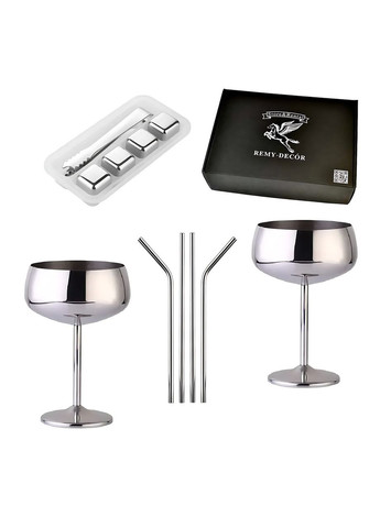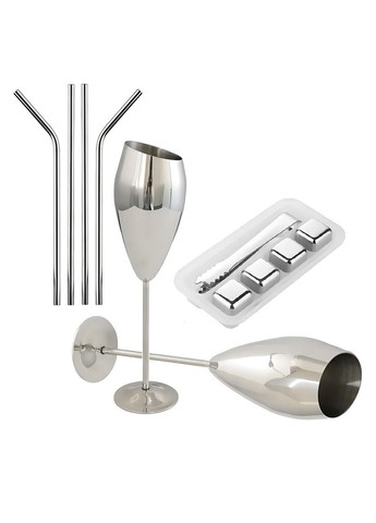 Подарочный набор из металлических фужеров для вина трубочек и кубиков для охлаждения из нержавеющей стали Набор серебряных бокалов для вина кубиков для охлаждения из нержавеющей стали REMY-DECOR на 2 человека Представляем идеальный набор аксессуаров для любителей вина и коктейлей! Этот набор состоит из 2 элегантных фужеров из нержавеющей стали красивого серебристого цвета, идеально подходящих для удовольствия вашими любимыми красными или белыми винами. Конструкция этих бокалов дольше сохраняет идеальную температуру вина, гарантируя, что каждый глоток будет таким же совершенным, как и последний. Помимо фужеров этот набор также включает набор коктейльных трубочек. Эти коктейльные соломинки изготовлены из высококачественной нержавеющей стали, что позволяет легко размешивать напитки без традиционной ложки. В комплект также входят кубики льда из нержавеющей стали. Эти кубики не только стильны и современны, но и многократны, а это значит, что вам больше никогда не придется беспокоиться о том, что лед закончится посреди вашего коктейля. Просто поместите кубики в морозильник, и они будут готовы к использованию в любое время. В наборе Вы получите: Бокал для вина из нержавеющей стали серебряного цвета 530 мл. – 2 шт. Кубики для охлаждения напитков REMY-DECOR 4 шт. камней и щипчики – 1 шт. Трубочка для коктейлей многоразовая REMY-DECOR серебро металлическая трубочка прямая 21,5 см – 2 шт. Трубочка для коктейлей многоразовая REMY-DECOR серебро металлическая трубочка изогнутая 21,5 см – 2 шт. Подарочная коробка с наполнителем из крафтовой бумаги – 1 шт. Этот набор станет идеальным подарком для любого вина или коктейлей, а также для себя, если вы ищете стильный и практичный способ обновить свою барную коллекцию. Высококачественные материалы из нержавеющей стали гарантируют, что этот набор прочен и прост в уходе, а современный дизайн будет отлично смотреться в любом домашнем баре или кухне. Зачем ждать? Получите свой сегодня и начните наслаждаться стильно! Бокалы для вина – прекрасное дополнение к любому дому. Они не только добавят изюминку вашему обеденному столу, но и позволят вам насладиться любимыми винами в правильном сосуде. Набор из пяти бокалов для вина позволит вам развлечь гостей или насладиться бутылкой вина в кругу семьи. Кроме того, они станут отличным подарком на любой праздник! Приобрести качественные и невероятно стильные бокалы можно также и на подарок. Элегантный, оригинальный и функциональный презент произведет впечатление на тех, кто разбирается в дизайне.