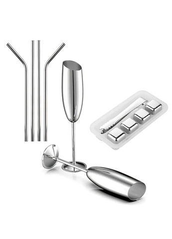 Набор подарочный из фужеров для серебристого шампанского цвета трубочек и кубиков для охлаждения из нержавеющей стали. Представляем вам набор бокалов для шампанского Maestro из нержавеющей стали – идеальное решение для создания великолепного атмосферного вечера. Наш набор включает в себя все необходимое для настоящих поклонников шампанского, и вы сможете насладиться неповторимым опытом раскрытия аромата и вкуса этого благородного напитка. Каждый бокал Maestro изготовлен с помощью передовых технологий и износостойкой нержавеющей стали, обеспечивая отличное качество и долговечность. Серебряный цвет бокалов придает им элегантный и роскошный вид, подчеркивая стиль вашего стола и создавая утонченную атмосферу во время праздников и особых событий. В комплекте с двумя бокалами вы также найдете четыре камня для охлаждения кубической формы, которые позволят вам сохранить прохладу и свежесть ваших любимых напитков без разведения их водой. Эти многоразовые камни являются идеальной альтернативой традиционному льду и сохранят температуру напитка в течение длительного времени. Щипцы для охлаждения прохладительных напитков станут незаменимым инструментом для сервировки стола. Их удобная конструкция позволяет легко и безопасно управлять камнями и поддерживать оптимальную температуру напитка, чтобы вы могли наслаждаться ими в полной мере. В качестве бонуса в наборе вы найдете 4 нержавеющих стальных трубочки, которые не только придают вашим напиткам стильный вид, но и служат экологически чистой альтернативой пластиковым трубочкам. Они многократно, легко моются и прослужат вам долгое время. Ключевые преимущества набора из двух бокалов Maestro для шампанского из нержавеющей стали: Элегантный дизайн: благодаря глянцевому покрытию и золотому цвету, бокалы Maestro для шампанского выглядят очень стильно и элегантно, что делает их отличным выбором для свадеб, дней рождения и других праздников. Высокое качество: набор из двух бокалов для шампанского из нержавеющей стали долговечный и изготовлен из высококачественных материалов. Они могут использоваться многократно, что делает их экономически эффективным выбором. Экологический: поскольку бокалы изготовлены из нержавеющей стали, они экологически безопасны и могут быть использованы многократно, не создавая лишнего мусора. Дополнительные принадлежности: набор включает в себя четыре трубочки из нержавеющей стали и кубики для охлаждения со щипчиками, что делает его еще более привлекательным и полезным для любителей шампанского. Универсальное использование: бокала Maestro для шампанского могут использоваться не только в домашней обстановке, но и в любом баре, кафе, клубе или ресторане, добавляя стиль и элегантность в любую обстановку. В наборе Вы получите: Бокал для шампанского Maestro из нержавеющей стали серебристого цвета 200 мл. – 2 шт. Кубики для охлаждения напитков REMY-DECOR 4 шт. камней и щипчики – 1 шт. Трубочка для коктейлей многоразовая REMY-DECOR серебро металлическая трубочка прямая 21,5 см – 2 шт. Трубочка для коктейлей многоразовая REMY-DECOR серебро металлическая трубочка изогнутая 21,5 см – 2 шт. Подарочная коробка с наполнителем из крафтовой бумаги – 1 шт. С набором бокалов для шампанского Maestro вы сможете создать незабываемые моменты и подарить себе и своим гостям неповторимый опыт шампанского. 
