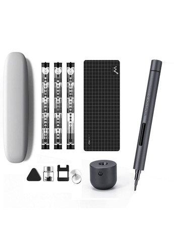 Лучший набор для профессионала Длина инструмента 17, 5 см, диаметр 1, 5 см. Идеально по руке для всех, привыкших держать паяльник и отвертку. В комплекте 56 сменных бит с возможностью намагничивания и размагничивания. Биты сидят в креплении плотно. Момента раскачивания или прокручивания биты в гнезде нет. Биты отвертки изготовлены из легированного стального сплава S2, скорость вращения до 200 оборотов в минуту. Есть возможность самостоятельного докручивания. Имеются 4 удлиненные биты. Значительная часть отверток узкоспециализированные для ремонта электроники. Оптимизируйте свою работу с Xiaomi Wowstick 1F+ На выворачивание/вкручивание винтовых креплений затрачивается около 3 секунд. Время разборки и сборки техники значительно сокращается. Стали качественная. В умелых руках набор будет творить чудеса. Идеальный комплект В комплект входит: Знаменитый магнитный коврик Wowstick – по размерам даже больше обычного. Выкрученные винты не потеряются и не раскатятся. На коврик нанесена разметка – раскладывайте выкрученные детали по порядку. Биты упакованы в удобные для переноски пластиковые тубы. Мощный размагничиватель /намагничиватель. Металлическая подставка для отвертки. Прочный плоский медиатор из пластика. Бутылочка для винтов. Компактный кейс для переноски отвертки вместе с одним из наборов бит. В кейс помещается или отвертка и туба с битами, или две тубы. Также в комплект входит присоска и USB шнур питания и подзарядки. Управление электрической отверткой WOWSTICK 1F+ Все управление выполняется одной длинной кнопкой – качелькой. В одну сторону – закручивание, в другую – откручивание. Скорость регулируется силой нажатия. При работе отвертки автоматически загорается направленная светодиодная подсветка – вы точно видите, что происходит в рабочем пространстве.