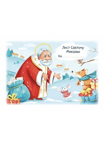 Приближается День Святого Николая, одного из самых почитаемых в Украине святых. Традиционно в канун каждый ребенок ждет особого гостя, который этой ночью имеет немало дел. Какая же радость – проснуться утром и обрести под подушкой желанный подарок! Это значит, что Святой Николай не обошел твой дом и вознаградил тебя за все добрые дела. А чтобы это непременно произошло, напиши Святому Николаю письмо. Начни с поздравления, расскажи Чудотворцу о себе, о своих успехах и увлечениях. Это письмо должно быть честным и искренним: спасибо всем, кто делал добро для тебя, напиши, кто получил помощь от тебя. Мы хотим, чтобы твое письмо запомнилось Святому Николаю, ведь ему придется прочитать множество детских писем. Так что возьми карандаши, фломастеры, наклейки и берись за работу, чтобы успеть до 19 декабря. Ты можешь нарисовать или вырезать из журнала идеи для подарков и вклеить их в письмо. Набор состоит из: конверта (162х229 мм) + открытка (210х297 мм) + упаковка в пакет поштучно.