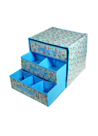 Для того чтобы хранить три ящика, нужно приложить усилия, чтобы создать уютный дом. Хранение вещей в специальных органайзерах – это эстетически красиво и невероятно удобно. Этот органайзер отлично подходит для хранения различных мелочей, аксессуаров, игрушек, белья и одежды. Выдвижные ящики Органайзер имеет 3 выдвижных ящика, которые позволят аккуратно разложить все необходимые вещи. Ящики оснащены удобными ручками. Тканевые вставки В комплекте есть специальные вставки, которые позволяют разделить их на удобные ячейки для хранения носа и других мелких вещей гардероба: одна вставка делит ящик на 9 ячеек, вторая – на 4 ячейки. Сложная и портативная Универсальный органайзер имеет компактные размеры, а для удобной транспортировки и хранения его можно сложить. Небольшой вес изделия поможет с легкостью переносить его из комнату в комнату. Даже вместе с содержимым. Непрозрачный цветной узор Органайзер станет элегантным дополнением интерьера. Приятный внешний вид может украсить любую комнату, создать в ней уютную атмосферу. Преимущества: Вычислен из прочной водонепроницаемой ткани. Специальные вставки в ячейки с набором (на 4 и 9 ячеек). Компактно складывается. Не занимает много места в доме. Хорош при транспортировке. Характеристики: Материал: полиэстер; Размеры (ДШХВ): Органайзер – 31х31х31,5 см; Ящик – 30х30х10 см; Обособление на 4 ячейки – 15 х 15 х8см; Разделение на 9 ячеек - 11x11 x8sм; Цвет: синий; Вес: 1,12 кг. Дополнительные характеристики: Тип товара: органайзер для хранения; Назначение: для хранения; Производитель: Китай. Упаковка: упаковка; Размеры в упаковке (ДШХВ): 64x31x7 см; Вес в упаковке: 1,12 кг. Комплектация: Основание органайзера, ящики – 3 шт., картонные основания – 3 шт., вставка – 2 шт.