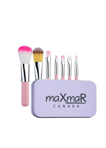 Набор кистей MaXmar PINK MB-210 Набор кисточек для макияжа из 7 инструментов в стильном сиреневом металлическом футляре. Он станет просто незаменимым помощником при создании идеального макияжа. Набор выполнен из материалов, не вызывающих аллергические реакции. Данный комплект всегда удобно поместить в любимую сумочку или взять в путешествие! Состав набора: кисть для пудры; кисть для тонального основания; кисть для растушевки теней; аппликатор для теней; кисть для подвода; кисть для помады; скошенная кисть для бровей.