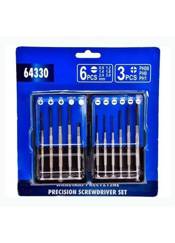 Набор прецизионных часовых отверток: SL1.4, SL1.8, SL2.5, PH0, PH00 и PH1. Поставляется в пластиковой коробочке. Количество в наборе: 6 шт