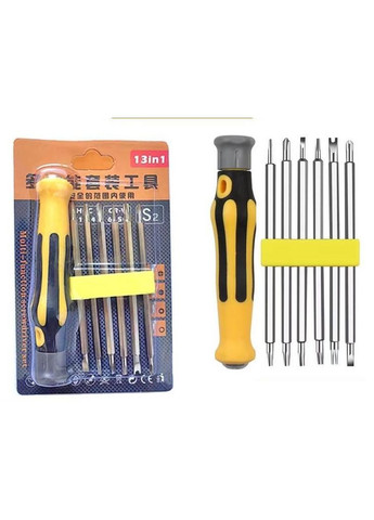 Универсальный набор отверток идеально подходит для ремонта телефонов, ноутбуков и мелкой техники. Материал высококачественная хромированная сталь S2. Его всегда можно взять с собой в путь: он не займет много места, но всегда выручит в ответственный момент. Характеристики: Материал: МеталлРучка: пластикКоличество: 6 шт с двух сторон (в сумме 12 шт)биты: T5-T7, T9-T2.5, Y3.0-M2.6, T6-T8, T10-T15, PH00-2.0